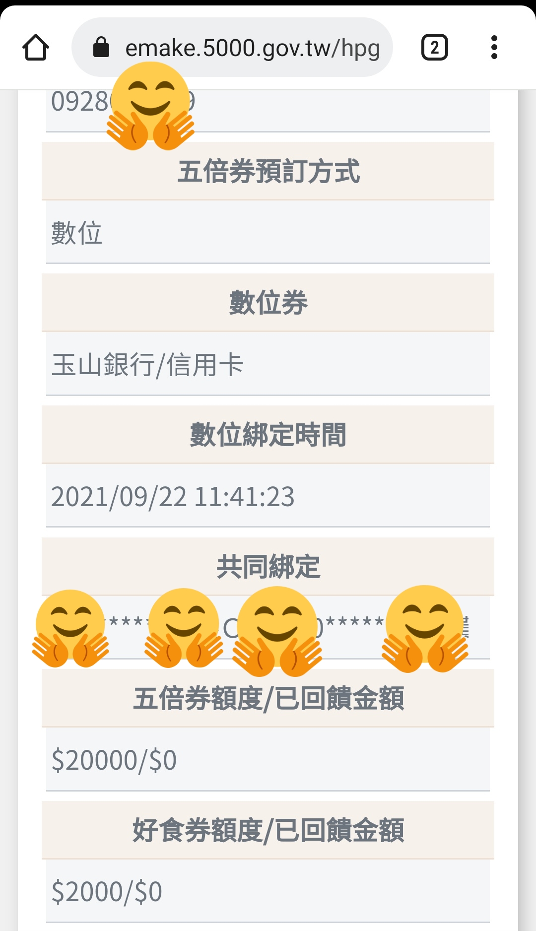 昨日9/22已綁定個人,今日下午四點半再完成共同綁定,共可獲得好食券2000元。