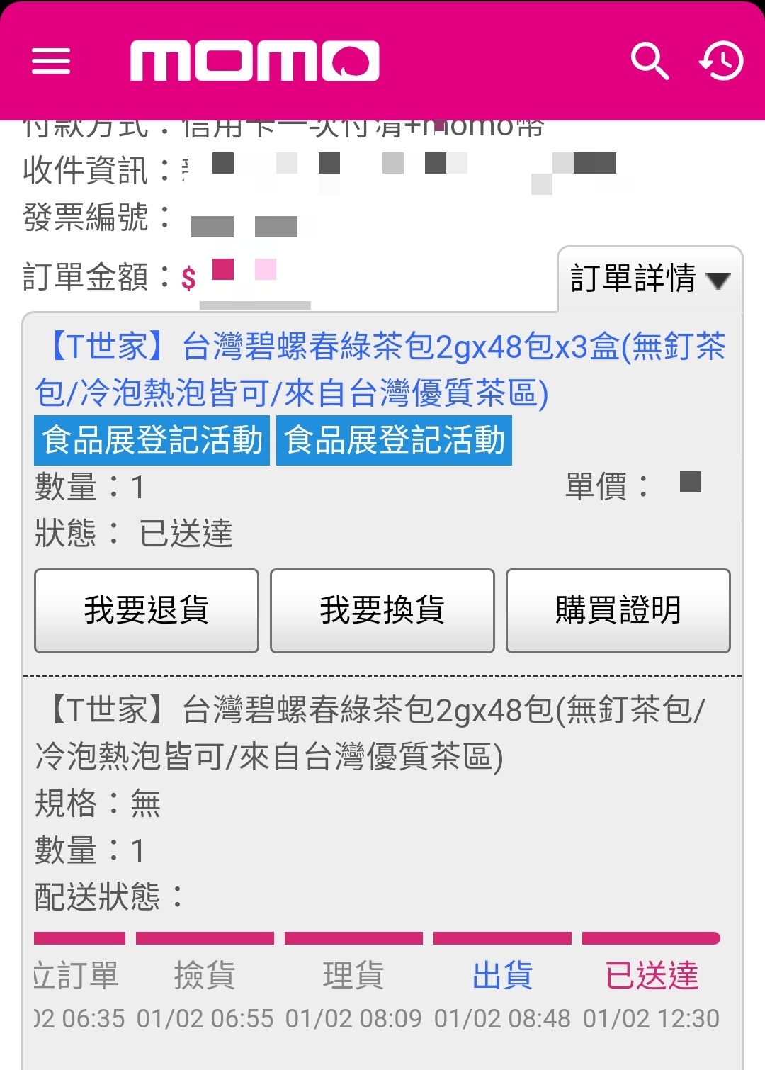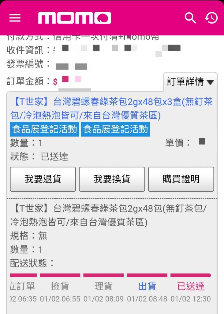 Posted in 一般日誌 momo線上購物連假出貨速度快 Author: 蔡玉貴(friber) Published Date: 2022 年 1 月 2 日 momo線上購物連假出貨速度快 momo購物2022元旦假日出貨速度令人驚喜!今天星期日2022/01/02上午6:35下訂單,中午12:30就到貨,從下訂到送達不到6小時,這效率真值得讚許。 真有效率,已在家中客廳待品茗。 Author: 蔡玉貴(friber)