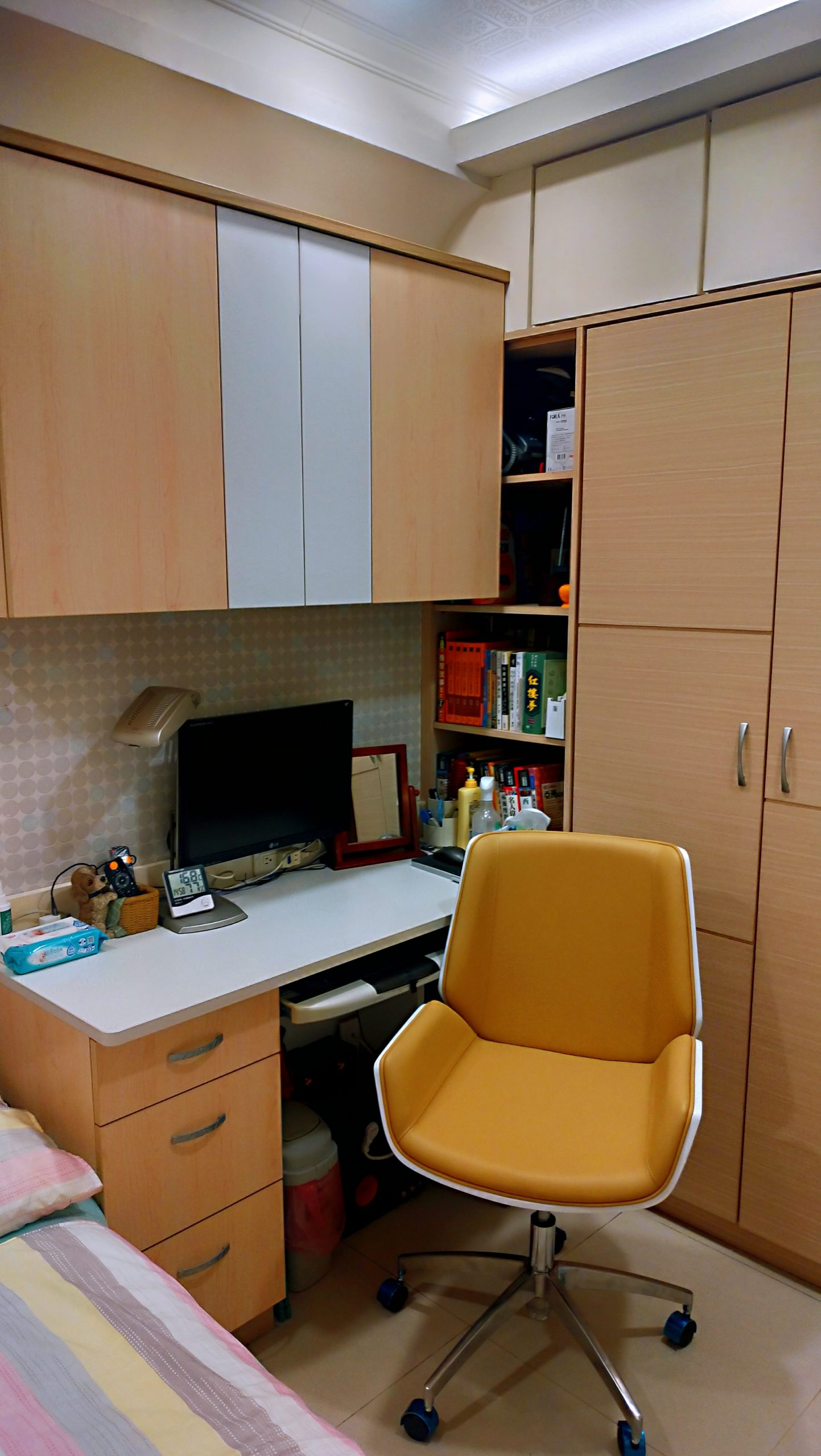 書房空間不大,簡約的椅子較適合。也挺符合人體功學,腰背有支撐,脊椎可直立,不會懶骨頭,久坐體態不易變形。