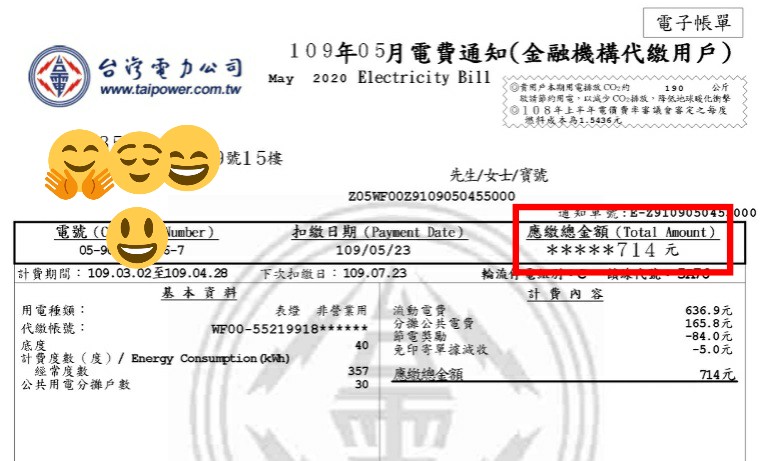 Posted in 一般日誌 109年5月份電費 Author: 蔡玉貴(friber) Published Date: 2020 年 5 月 24 日 109年5月份電費 714元 計費期間 109/03/02-109/04/28 簡約生活,自律不自虐。 Author: 蔡玉貴(friber)