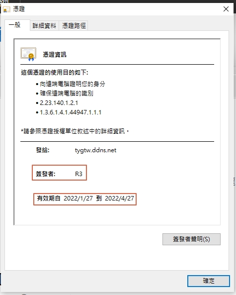 tygtw.ddns.net更新ssl安全憑證至2022/4/27