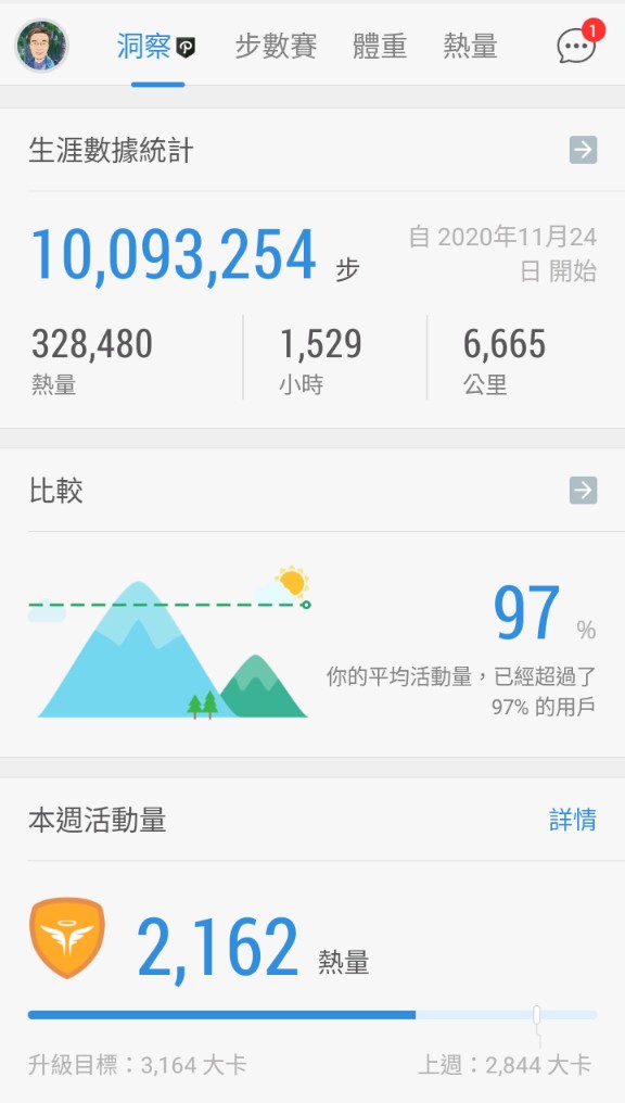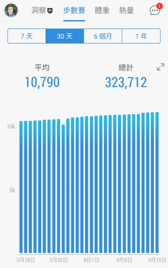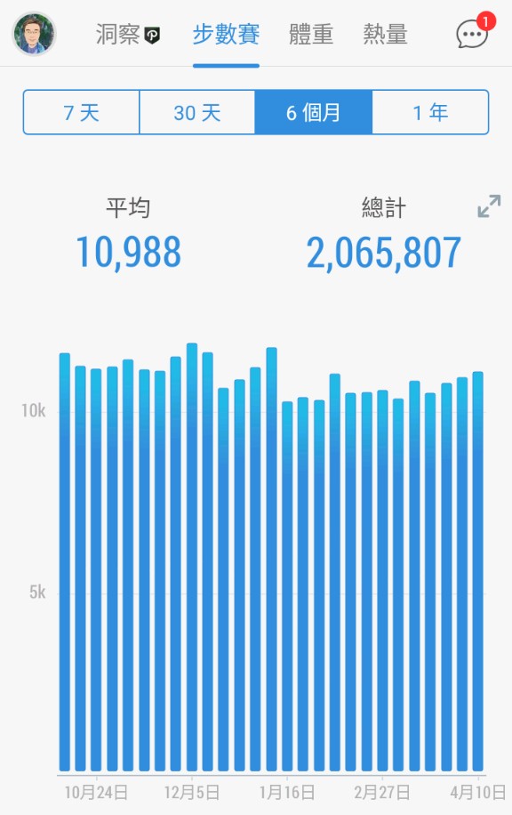 Posted in 一般日誌 第二十九個30天步行成果紀錄(111/3/17-112/04/15) Author: 蔡玉貴(friber) Published Date: 2023 年 4 月 15 日 第二十九個30天步行成果紀錄(111/3/17-112/04/15) 今日步數:11172 6個月平均步數:10988 30天平均步數:10790 7天平均步數:11085 平均活動量超過97%的用戶,累計步數:10093254 相關文章 第二十八個30天步行成果紀錄(111/2/15-112/03/16) Author: 蔡玉貴(friber)