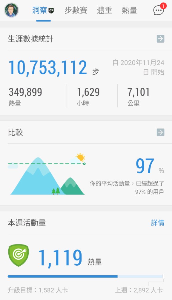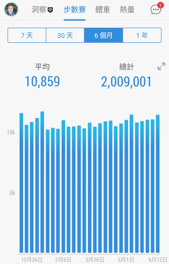 Posted in 一般日誌 第三十一個30天步行成果紀錄(111/5/16-112/06/14) Author: 蔡玉貴(friber) Published Date: 2023 年 6 月 14 日 第三十一個30天步行成果紀錄(111/5/16-112/06/14) 今日步數:11551 6個月平均步數:10859 30天平均步數:11018 7天平均步數:11293 平均活動量超過97%的用戶,累計步數:10753112 相關文章https://tygtw.ddns.net/?p=3536 Author: 蔡玉貴(friber)